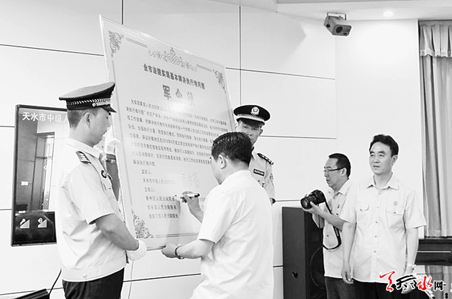 為了實(shí)現(xiàn)基本解決執(zhí)行難問題,天水市7個(gè)基層法院的院長簽訂了在兩年內(nèi)基本解決執(zhí)行難問題軍令狀,向執(zhí)行難宣戰(zhàn)。
