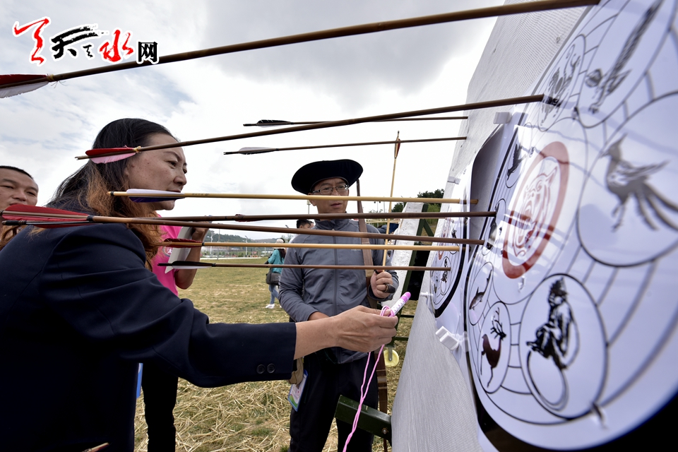 ??? 天天天水網(wǎng)訊(記者何永德)8月30日上午,作為中國·天水秦州第二屆“李廣杯”國際傳統(tǒng)射箭錦標(biāo)賽中的融趣味性與比賽性于一體的特色表演比賽(九宮賽)在秦州區(qū)平南鎮(zhèn)青鵑山舉行,秦州區(qū)委副書記、區(qū)長何東等相關(guān)部門工作人員出席了開賽儀式。