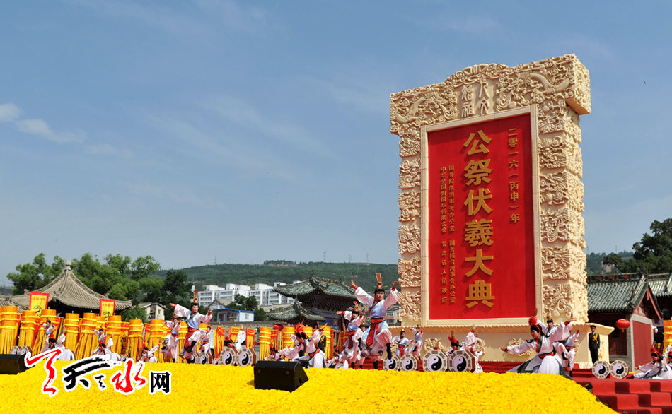 天水是伏羲的誕生地和伏羲文化的發(fā)祥地,公祭伏羲由來已久,相沿成習(xí)。公祭伏羲大典暨文化旅游節(jié)自1998年開始舉辦以來,已成功舉辦了27屆,規(guī)模和影響逐年擴(kuò)大。2005年,首次由省政府主持舉辦了公祭伏羲大典。2006年,伏羲文化旅游節(jié)被國(guó)際節(jié)慶協(xié)會(huì)評(píng)為“中國(guó)最具發(fā)展?jié)摿κ蠊?jié)慶”活動(dòng)之一,公祭伏羲大典被列入國(guó)家首批非物質(zhì)文化遺產(chǎn)保護(hù)名錄。2008年,伏羲文化旅游節(jié)又被中華民族文化促進(jìn)會(huì)、節(jié)慶中華協(xié)作體理事會(huì)聯(lián)合授予“最佳文化傳承獎(jiǎng)”。之后,在探索海峽兩岸公祭活動(dòng)上實(shí)現(xiàn)了新突破,實(shí)現(xiàn)了海峽兩岸共祭。