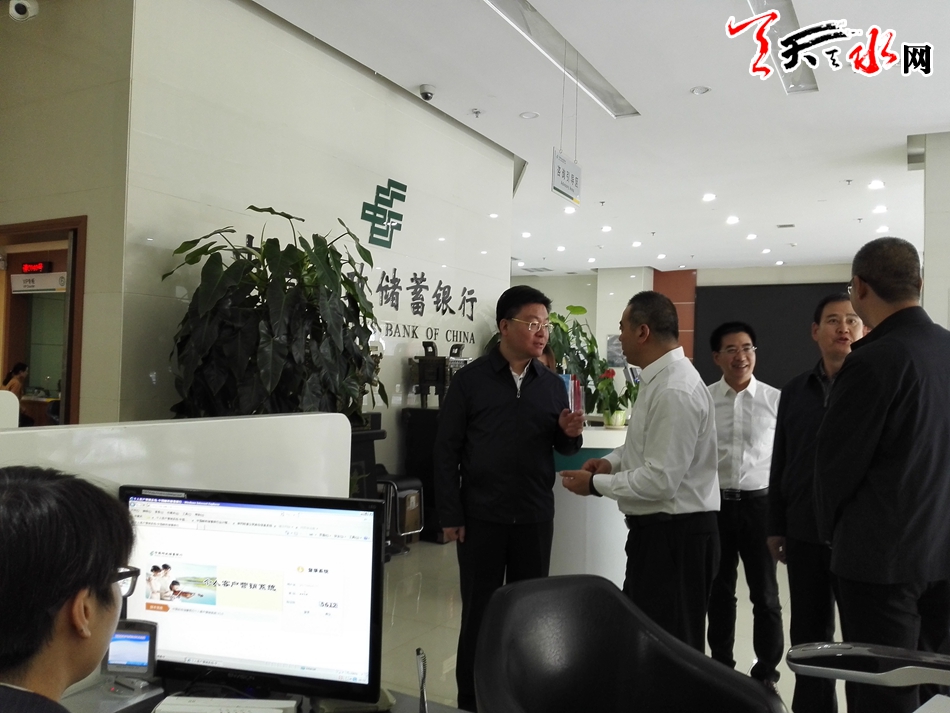 當(dāng)日,李曉東一行先后來到建行天水分行、農(nóng)行天水分行、農(nóng)發(fā)行天水分行、郵儲銀行天水分行、蘭州銀行天水分行、浙商銀行天水分行,通過察看營業(yè)網(wǎng)點、聽取工作匯報、與相關(guān)負(fù)責(zé)人座談等形式,詳細(xì)了解了各家銀行基本情況和業(yè)務(wù)開展情況以及在發(fā)展過程中存在的困難和問題。