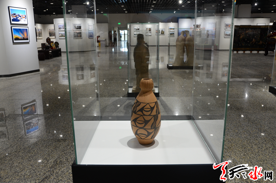 ????在位于敦煌國(guó)際會(huì)展中心C區(qū),由我市和省攝影家協(xié)會(huì)共同主辦的“影像絲路--國(guó)際攝影藝術(shù)作品展”展廳布局大方、典雅。占地1500多平方米的展廳內(nèi),除了四壁和設(shè)計(jì)別致的立柱上展出由馬克·呂布、王慶松、陳農(nóng)等國(guó)內(nèi)外攝影大師的200余幅攝影作品和影像絲路天水?dāng)z影雙年展主題展部分優(yōu)秀作品之外,還整齊有序地在展廳布置了麥積山石窟雕塑、大地灣陶器、馬家塬戰(zhàn)國(guó)墓葬出土文物和天水雕漆、鴛鴦?dòng)衿?、天水竹雕、天水泥塑、天水古琴、天水古箏等具有“天水元素”的的文化藝術(shù)作品130多件。除此之外,在以“華夏文明在甘肅”為主題的甘肅展館內(nèi),代表我市伏羲文化、麥積山文化、大地灣文化、雕漆文化等的70多件文化文物精品在展廳顯著位置予以展示。所有這些文化文物精品,都以其代表的悠久歷史、反映的豐厚文化信息和自身精致的藝術(shù)工藝吸引了眾多與會(huì)中外嘉賓的眼球。