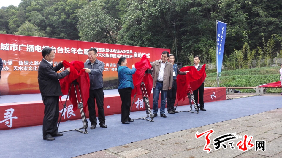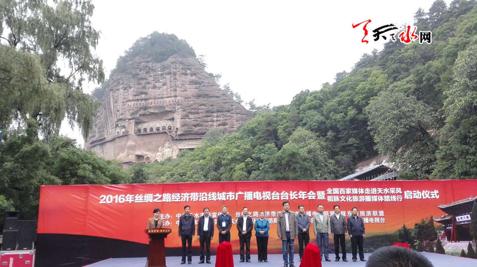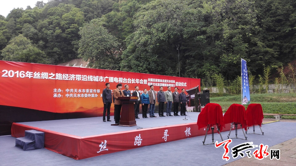 天天天水網(wǎng)26日11時訊 【記者 劉曉亞】9月26日上午,2016年絲綢之路經(jīng)濟(jì)帶沿線城市廣電臺長年會暨全國百家媒體走進(jìn)天水采風(fēng)、祖脈文化旅游圈媒體踏線行啟動儀式在麥積山廣場舉行。