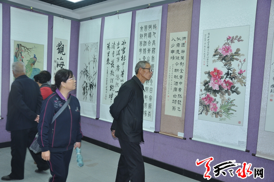 天天天水網(wǎng)訊【記者馬哲】10月9日是我國傳統(tǒng)節(jié)日“重陽節(jié)”,也是全國第四個老年節(jié)和甘肅省第29個老人節(jié)。當(dāng)天,天水市2016年重陽節(jié)老年書畫展在市美術(shù)館開展。本次展覽由市老齡委、市老干部工作局主辦,市老齡辦、市老年書畫研究會、市書畫院承辦,共展出書法繪畫作品230余幅,這些作品主題鮮明,內(nèi)容廣泛,形式多樣,貼近生活,貼近實(shí)際,展示了我市老年書畫的新成果新風(fēng)貌。市領(lǐng)導(dǎo)王光慶、王正茂、王子生、溫利平、馬武生參觀了書畫展覽。