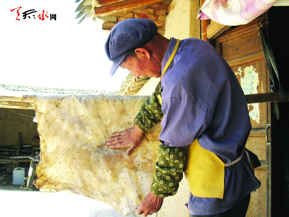 武山縣馬力鎮(zhèn)北順村北堡組皮革鞣制與車馬挽具制作藝人李早貴先生,是一位對祖?zhèn)骷妓嚽橛歇氱姷拿耖g藝人。