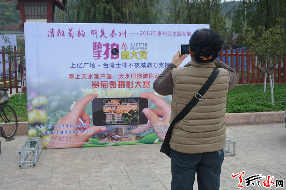 ????菊展期間,由天水日?qǐng)?bào)社主辦,秦州區(qū)園林處、天水日?qǐng)?bào)社全媒體承辦,上億廣場(chǎng)·臺(tái)灣士林不夜城鼎力支持的第三屆掌上天水、天水日?qǐng)?bào)微信公眾號(hào)賞菊微攝影大賽再次拉開帷幕。?天天天水網(wǎng)記者 王曉華 攝