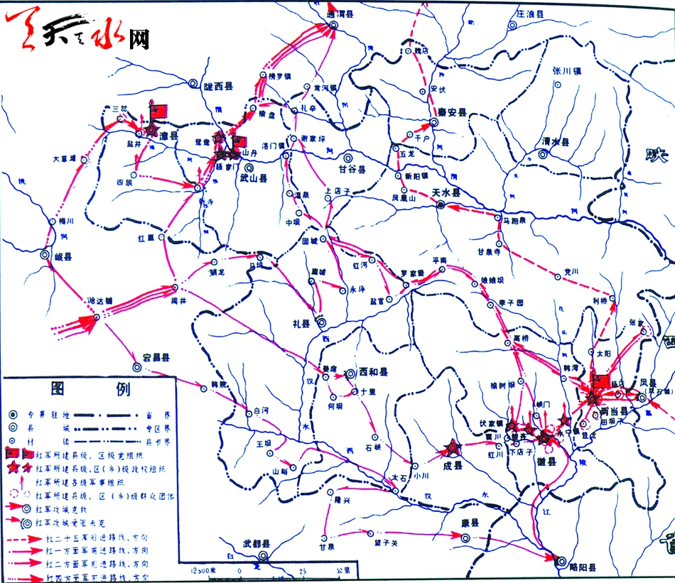 ▲紅軍長征途經(jīng)天水路線圖
