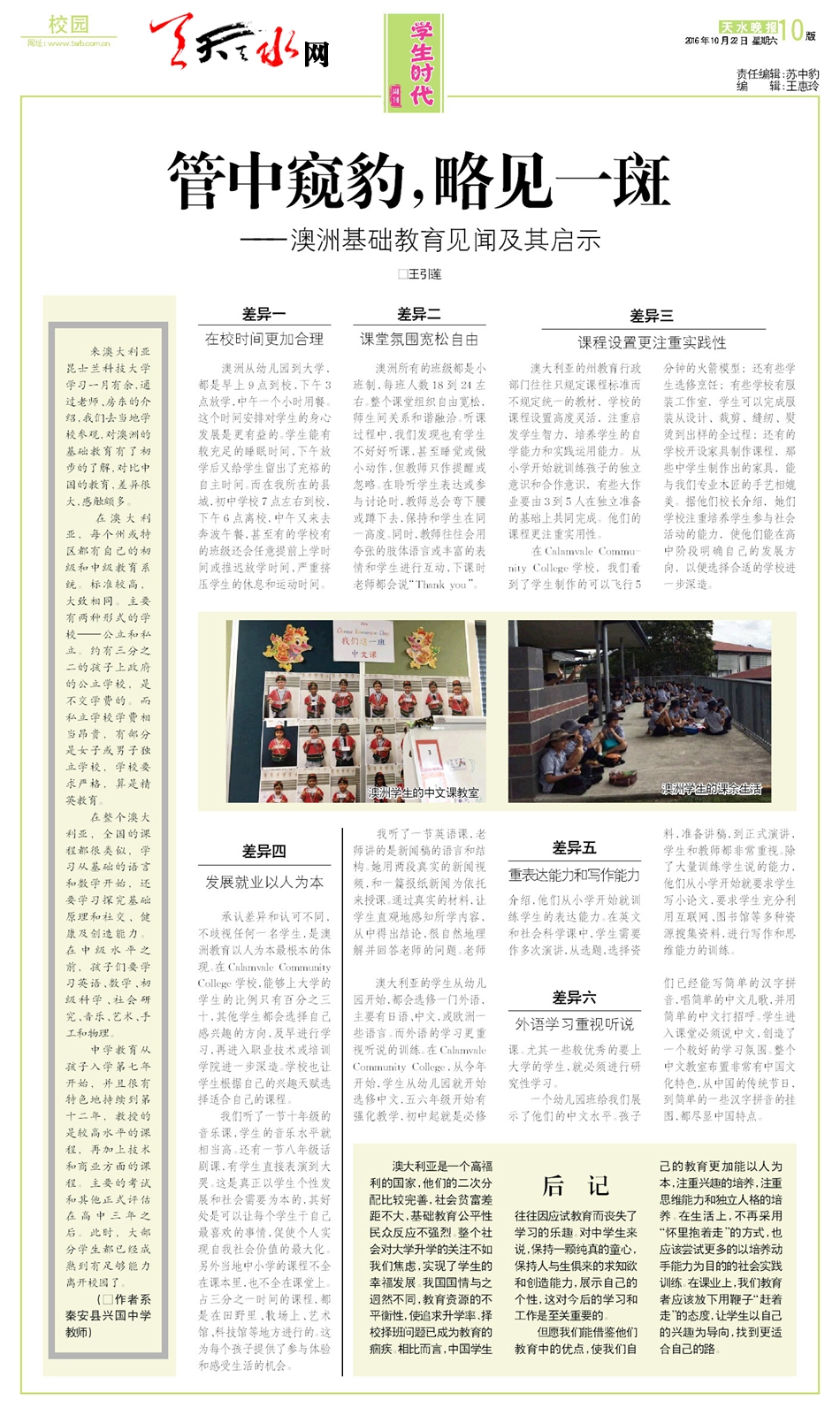 ——澳洲基礎教育見聞及其啟示