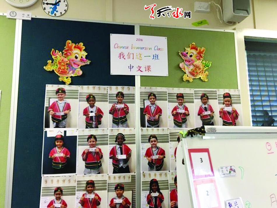 一個幼兒園班給我們展示了他們的中文水平。孩子們已經(jīng)能寫簡單的漢字拼音,唱簡單的中文兒歌,并用簡單的中文打招呼。學生進入課堂必須說中文,創(chuàng)造了一個較好的學習氛圍。整個中文教室布置非常有中國文化特色,從中國的傳統(tǒng)節(jié)日,到簡單的一些漢字拼音的掛圖,都盡顯中國特點。