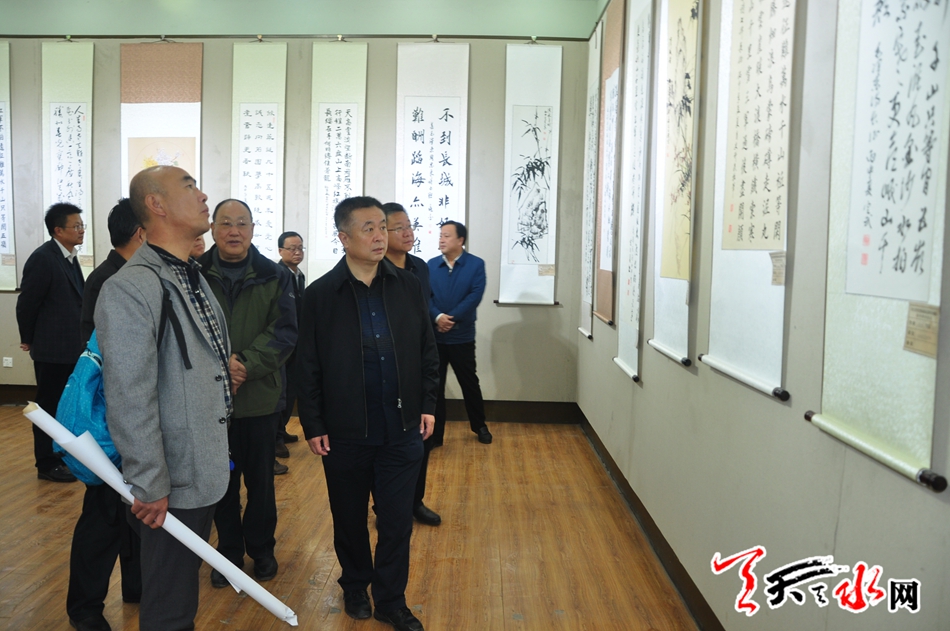 ?。ㄊ形N?、市委秘書長(zhǎng)蔣曉強(qiáng),副市長(zhǎng)張建杰,市政協(xié)副主席王振宇參觀書畫展)