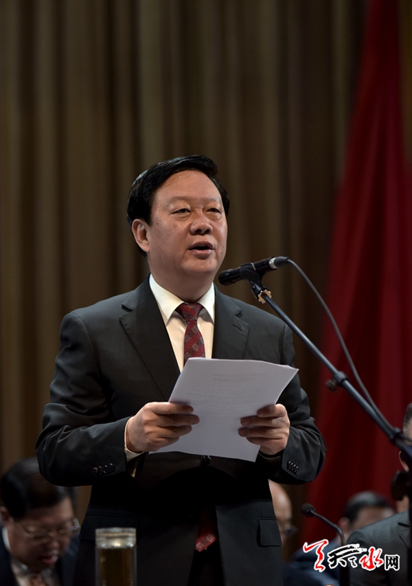 王銳代表中國共產(chǎn)黨天水市第六屆委員會向大會作報告