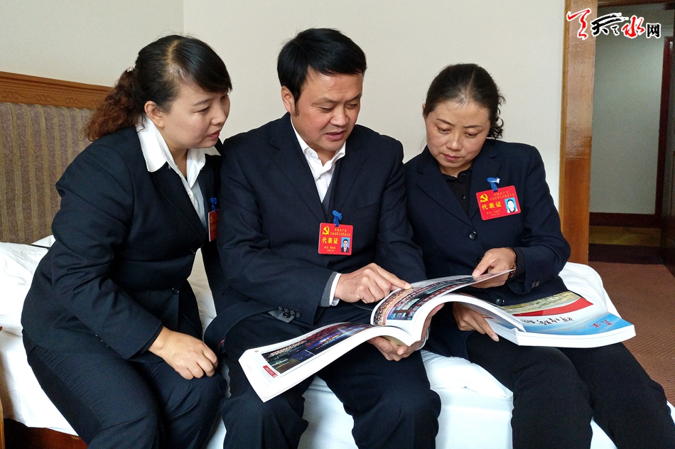 10月28日,參加中國共產(chǎn)黨天水市第七次代表大會的代表們在翻閱“天水2011—2016輝煌跨越”圖冊。