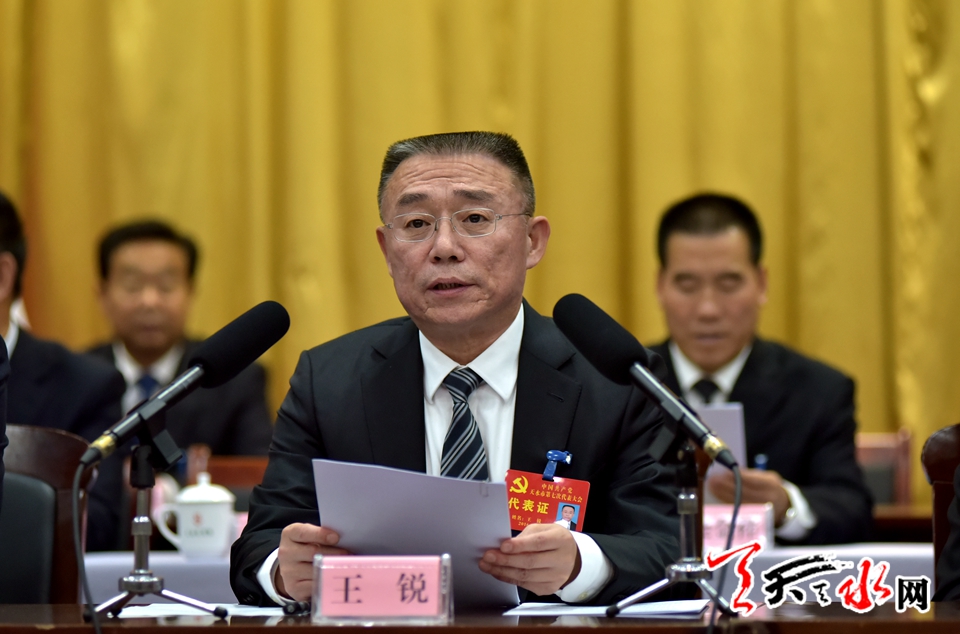 ????王銳在會(huì)上講話。他指出,市第七次黨代會(huì)是在我市“十三五”規(guī)劃實(shí)施開局之年、加快轉(zhuǎn)型升級(jí)發(fā)展的關(guān)鍵時(shí)期、全面建成小康社會(huì)決勝階段召開的一次十分重要的會(huì)議。大會(huì)始終貫徹“四個(gè)全面”戰(zhàn)略布局和“五大發(fā)展理念”,認(rèn)真總結(jié)了市六次黨代會(huì)以來的工作,科學(xué)謀劃了今后五年全市發(fā)展的宏偉藍(lán)圖,選舉產(chǎn)生了中國共產(chǎn)黨天水市第七屆委員會(huì)和中國共產(chǎn)黨天水市第七屆紀(jì)律檢查委員會(huì)。會(huì)議開得十分圓滿,非常成功,既是一次總結(jié)過去、謀劃未來的大會(huì),也是一次鼓舞斗志、凝聚力量的大會(huì)。會(huì)議的勝利召開,對(duì)于進(jìn)一步推動(dòng)全市經(jīng)濟(jì)社會(huì)轉(zhuǎn)型升級(jí)發(fā)展必將產(chǎn)生重大而深遠(yuǎn)的影響。