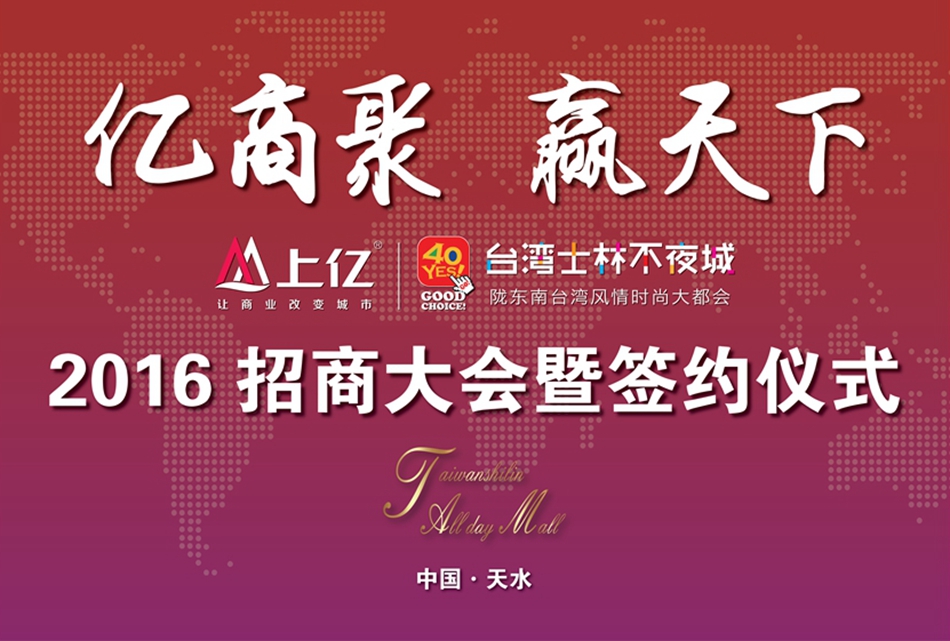 10月29日,上億廣場(chǎng)?臺(tái)灣士林不夜城招商大會(huì)暨簽約儀式在華天電子賓館舉行,上億集團(tuán)天水項(xiàng)目負(fù)責(zé)人、臺(tái)北士林觀光發(fā)展協(xié)會(huì)代表、天水億豐置業(yè)有限公司主要領(lǐng)導(dǎo)、眾多國(guó)內(nèi)外知名品牌代表以及媒體匯聚一堂,共同見證了上億廣場(chǎng)?臺(tái)灣士林不夜城招商大會(huì)暨簽約儀式的活動(dòng)盛況。