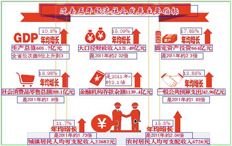 預(yù)期目標(biāo):生產(chǎn)總值年均增長8%,固定資產(chǎn)投資年均增長10%,社會(huì)消費(fèi)品零售總額年均增長10%,一般公共預(yù)算收入年均增長8%,城鎮(zhèn)居民人均可支配收入年均增長9%,農(nóng)村居民人均可支配收入年均增長12%。