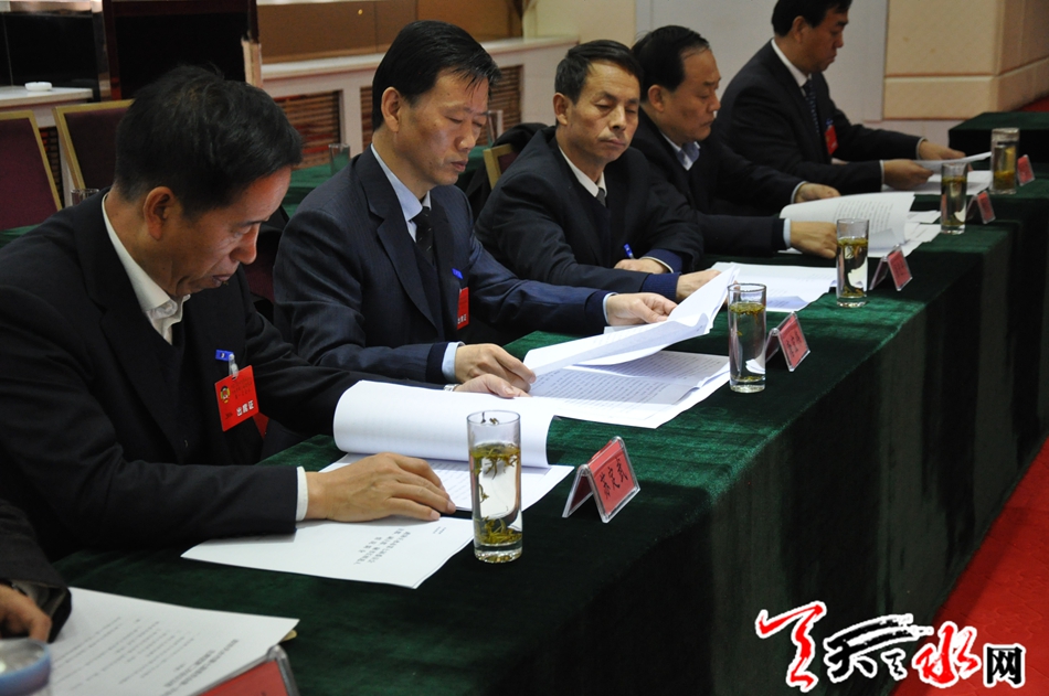 會議首先審議通過了會議議程(草案)。會議傳達(dá)學(xué)習(xí)了中共十八屆六中全會精神和中共天水市第七次代表大會精神;審議并原則通過了大會選舉辦法(草案);審議并原則通過了天水市第七屆委員會主席、副主席、秘書長、常務(wù)委員候選人名單(草案);審議并原則通過了政協(xié)天水市第七屆委員會第一次會議政治決議(草案);審議并原則通過了政協(xié)天水市第七屆委員會第一次會議提案審查委員會關(guān)于政協(xié)天水市第七屆委員會第一次會議提案審查情況的報(bào)告(草案)。