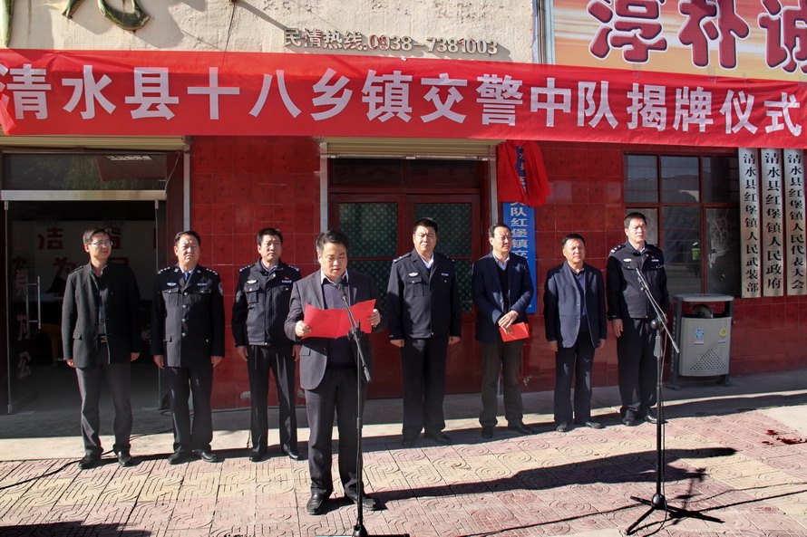 天天天水網(wǎng)訊 11月2日下午,清水縣舉行18鄉(xiāng)鎮(zhèn)交警中隊揭牌儀式。市公安局交警支隊副政委黃泰生,縣委常委、常務副縣長牛永禎,縣委常委、政法委書記秦永斌出席揭牌儀式。18鄉(xiāng)鎮(zhèn)鄉(xiāng)鎮(zhèn)長、交管站長、交警中隊全體人員,以及縣公安局、安監(jiān)局主要負責人,共計90余人參加了揭牌儀式。