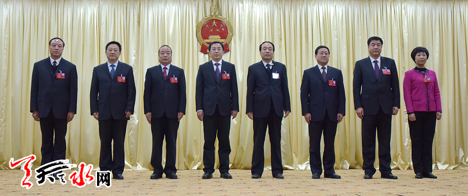 ▲新當(dāng)選的天水市第七屆人民代表大會常務(wù)委員會主任、副主任、秘書長合影
