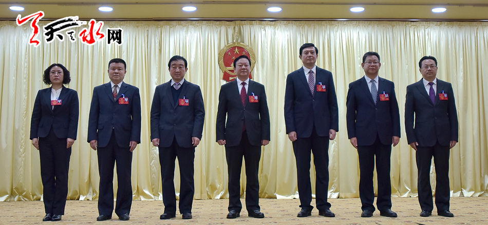 ▲新當(dāng)選的天水市第七屆人民政府市長(zhǎng)、副市長(zhǎng)合影