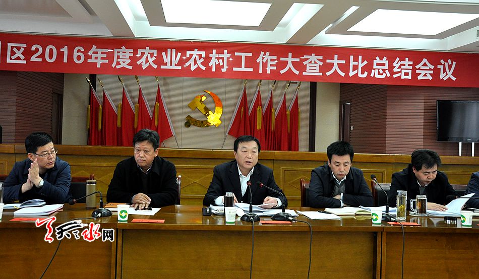 天天天水網(wǎng)訊【記者 張文都】11月11日,天水市委常委、秦州區(qū)委書(shū)記雷鳴在秦州區(qū)2016年度農(nóng)業(yè)農(nóng)村工作大查大比總結(jié)會(huì)上要求,全區(qū)各級(jí)部門抓好農(nóng)業(yè)農(nóng)村工作,要強(qiáng)化使命擔(dān)當(dāng),恪守為民宗旨,凝聚促進(jìn)發(fā)展的強(qiáng)大動(dòng)力,在抓好易地搬遷、新農(nóng)村建設(shè)、美麗鄉(xiāng)村建設(shè)等工作的基礎(chǔ)上,以大查大比活動(dòng)為契機(jī),凝聚合力,繪就一幅群眾期盼、指日可待,幸福美好的農(nóng)村發(fā)展宏偉藍(lán)圖。