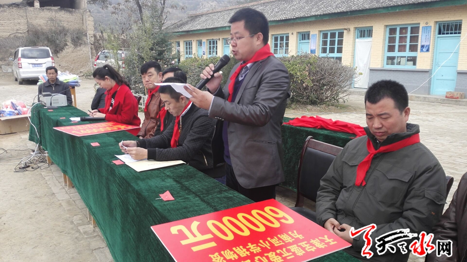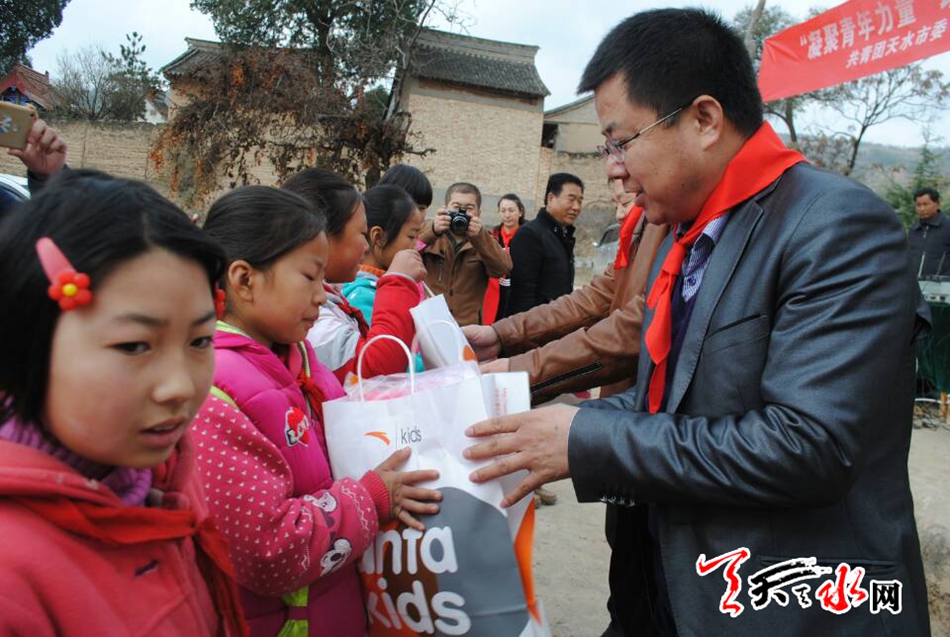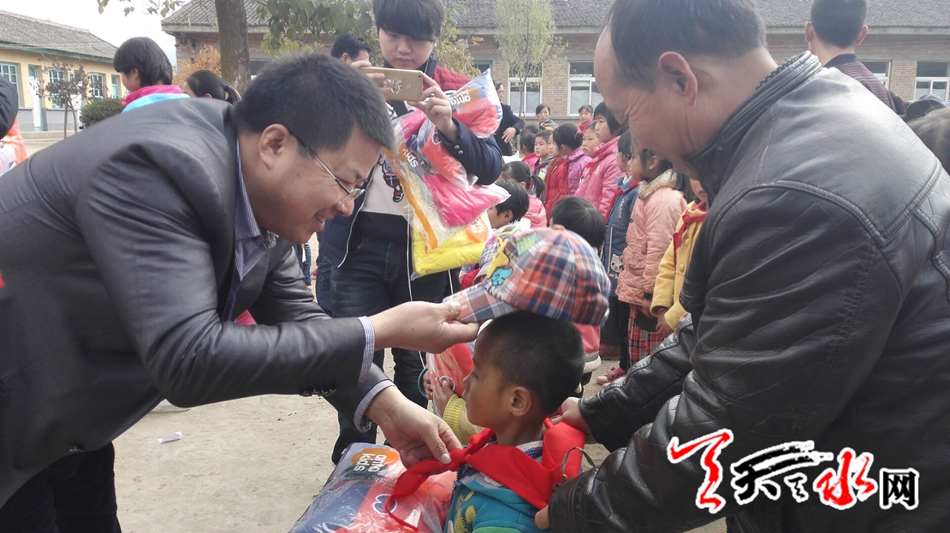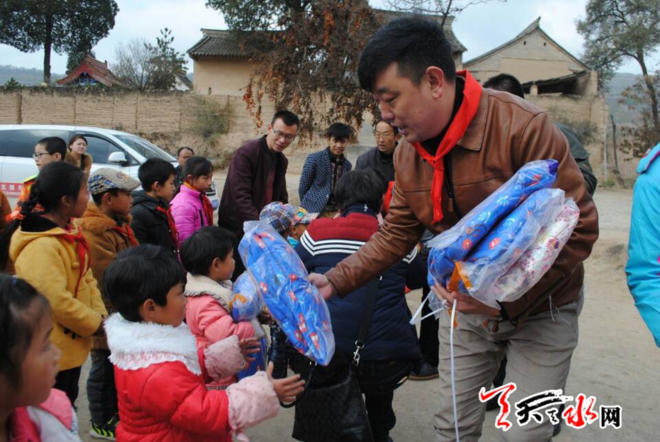 天天天水網(wǎng)11日16時(shí)訊【記者 李旺旺】11月11日,青年企業(yè)家走進(jìn)甘肅天水大型愛(ài)心公益發(fā)放儀式在麥積區(qū)石佛鎮(zhèn)張坪小學(xué)舉行。