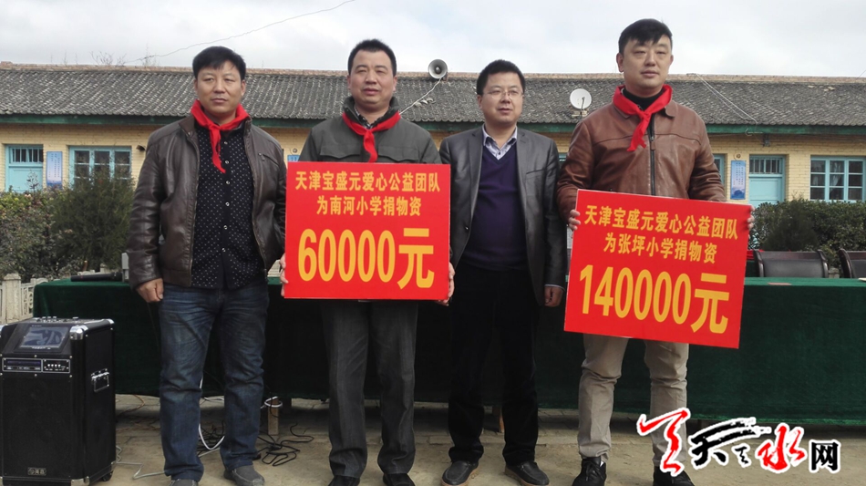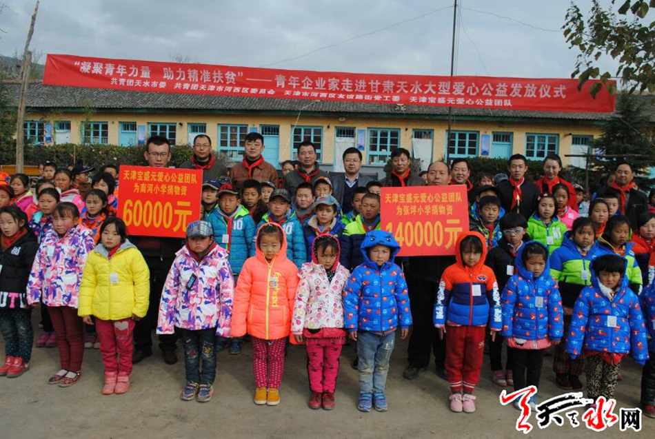 此次公益活動(dòng)由共青團(tuán)天津市河西區(qū)委員會(huì),天津市河西區(qū)友誼路街黨工委,天津?qū)毷⒃獝?ài)心公益團(tuán)隊(duì)發(fā)起。當(dāng)日,為我市麥積區(qū)石佛鎮(zhèn)張坪小學(xué),伯陽(yáng)鎮(zhèn)南河小學(xué)捐贈(zèng)了文具,課桌椅,羽絨服,棉鞋、煤爐等物資,共計(jì)總價(jià)值20萬(wàn)元。