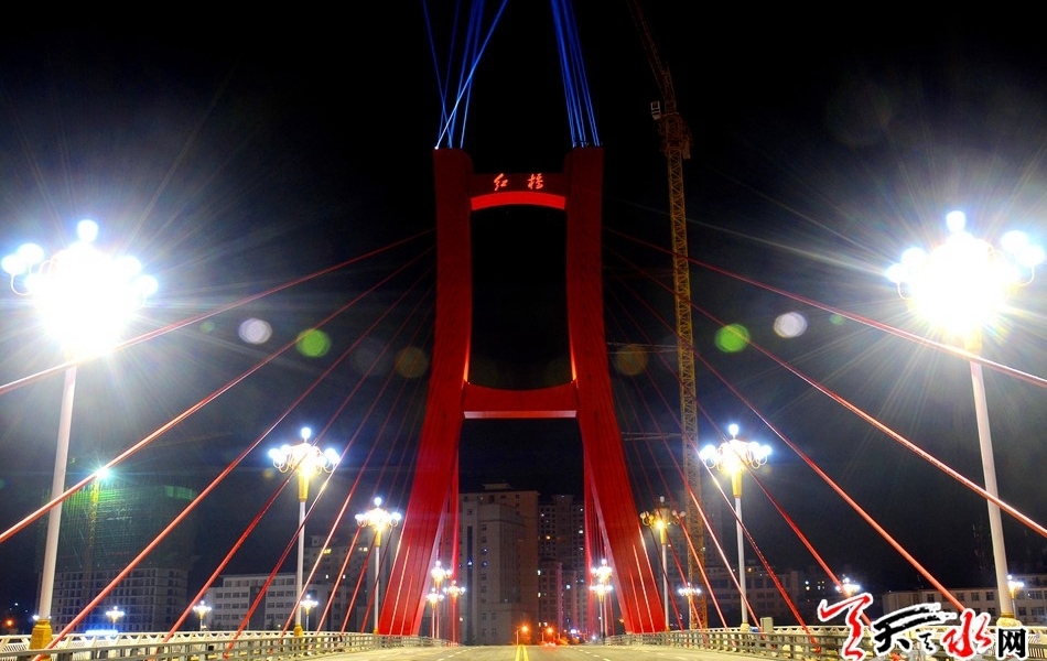 ????藉河紅橋是我市近年來(lái)實(shí)施的重點(diǎn)城市基礎(chǔ)建設(shè)工程,也是完善城市交通功能、方便市民出行的民生工程。工程總投資1.64億元,橋體長(zhǎng)196米,寬30米,跨越藉河,南接藉河南路、連通天慶路,北接藉河北路、連通新華路,為獨(dú)塔雙索面斜拉橋。