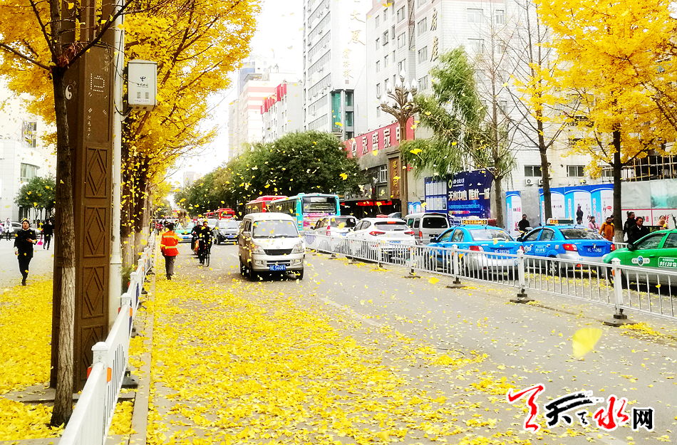 銀杏樹葉變黃、飄落的時(shí)候,秦州區(qū)民主東西路和青年南北路這兩條街道就成了天水冬日里的一道靚麗景觀,整條街都被金黃色的落葉所覆蓋,引得市民紛紛前來欣賞、拍照,希望把這美景記錄在相機(jī)、手機(jī)里。