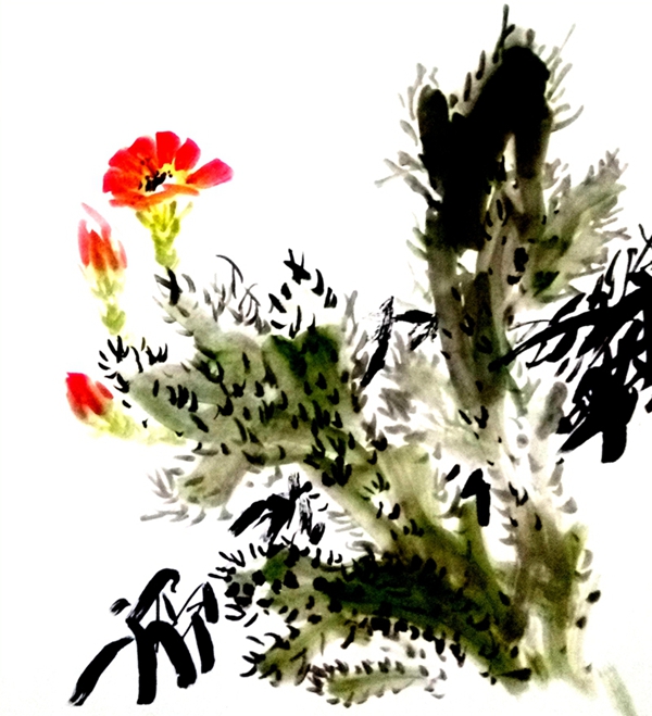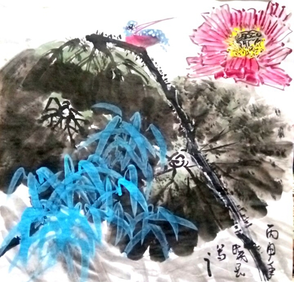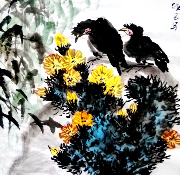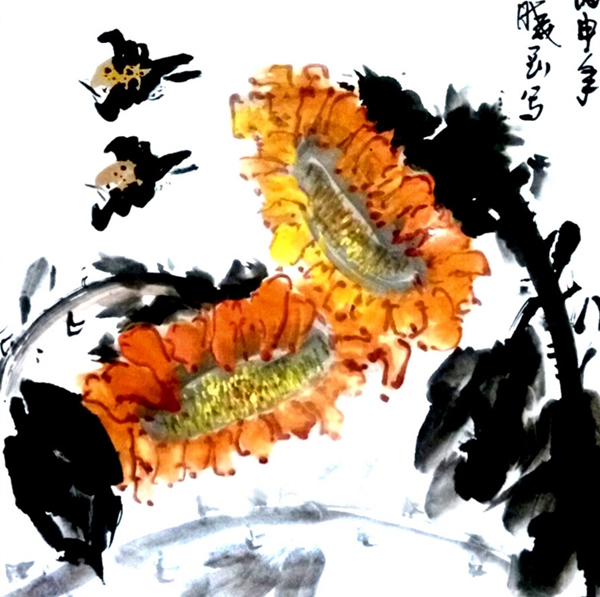 丁曉剛先生還真的是一位寫菊高手。古往今來,以菊花為主題的詩詞繪畫多得數(shù)不勝數(shù),菊花之所以受到文人墨客如此的追捧,大約是因?yàn)榫栈ò了_,不懼嚴(yán)寒,素潔高雅的風(fēng)骨吧!觀丁曉剛先生畫的菊花,把這一景象表達(dá)的非常深刻。特別是先生以常以他自已創(chuàng)作的菊花詩作畫,作品更富感染力。