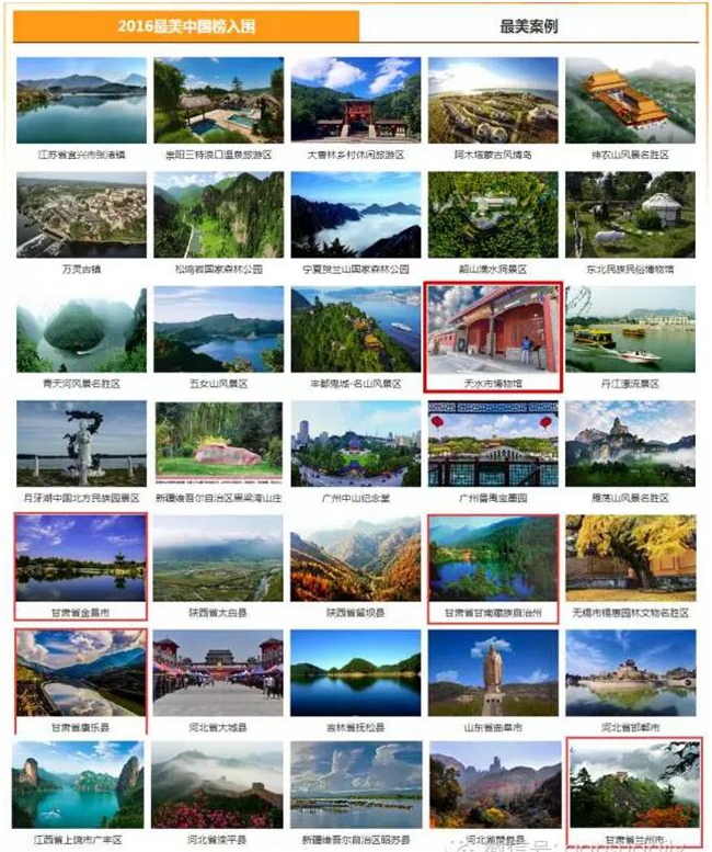 前不久2016創(chuàng)新“互聯(lián)網(wǎng)+全域旅游”暨第四屆旅游業(yè)融合與創(chuàng)新論壇上“2016最美中國榜”正式發(fā)布。甘肅有五個地方入圍,分別是: