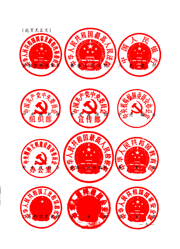 今日,一份紅頭文件出現(xiàn)在人們的視野中,這是一份有多達(dá)44個(gè)國(guó)家部委、中央機(jī)關(guān)聯(lián)署的文件,單位名稱的后面,蓋有44枚大紅公章,整份文件中蓋公章的頁(yè)數(shù)就有四頁(yè)。