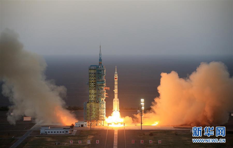 資料圖:10月17日7時(shí)30分,搭載著神舟十一號(hào)載人飛船的長(zhǎng)征二號(hào)F遙十一運(yùn)載火箭在酒泉衛(wèi)星發(fā)射中心點(diǎn)火升空。