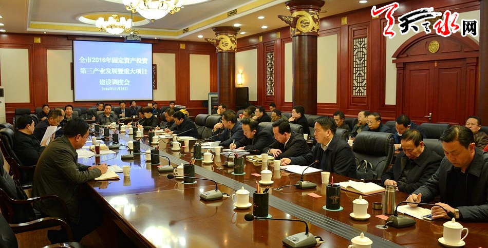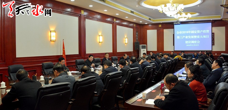 天天天水網(wǎng)訊【記者姬旺芳 實習(xí)生閆波】11月25日,天水市政府召開2016年固定資產(chǎn)投資、第三產(chǎn)業(yè)發(fā)展暨重大項目建設(shè)調(diào)度會。天水市委常委、常務(wù)副市長趙衛(wèi)東強調(diào),各縣區(qū)和相關(guān)部門要認真抓好補齊落實,充分利用今年有限的工作時間,深入分析問題,切實查漏補缺,采取得力措施,確保固定資產(chǎn)投資、項目建設(shè)進度、三產(chǎn)全年目標(biāo)任務(wù)按期圓滿完成。