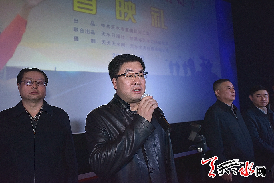王正茂在首映禮開幕儀式上首先代表市委,市政府對這部電影的放映表示熱烈祝賀,他說;公路系統(tǒng)養(yǎng)路工人是一個特殊的群體,也是一個英雄的群體,是一個奉獻的群體,他們中間有許多感人至深的故事,但是長期以來,這個群體被社會遺忘,這一部由市直機關(guān)工委,天水日報社、甘肅省天水公路管理局聯(lián)合出品,天天天水網(wǎng)、天水主流傳媒有限公司攝制的微電影《一路上有你》,主要通過微電影這種方式,全面反映了三代養(yǎng)路工人的悲歡離合,喜怒哀樂,觀看后,對養(yǎng)路工人這個群體充滿了敬意,同時對他們奉獻精神和犧牲精神也充滿了同情,希望大家通過觀看影片,對這樣的群體能夠引起社會關(guān)注,在大家享受社會發(fā)展成果的同時,不要忘記有這么一群人在我們身后默默奉獻。這部影片正因為他的選材比較獨特,而且出演的演員大多都是工作在一線的養(yǎng)路工人,所以非常感人,近日還在第三屆中國報業(yè)新媒體大會中國報業(yè)短視頻微電影大賽上獲得優(yōu)秀微電影獎。希望各個行業(yè)能夠挖掘出這樣典型事跡,典型人物,通過新媒體的手段,能把我們這些充滿正能量的故事,人物都能夠宣傳出去,讓他們成為目前社會的主流,成為弘揚主旋律,傳播正能量的一支重要力量。目前全市各單位正在開展“兩學一做”活動,希望各單位黨組織能夠組織廣大黨員干部觀看學習。
