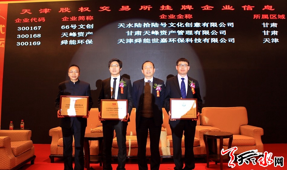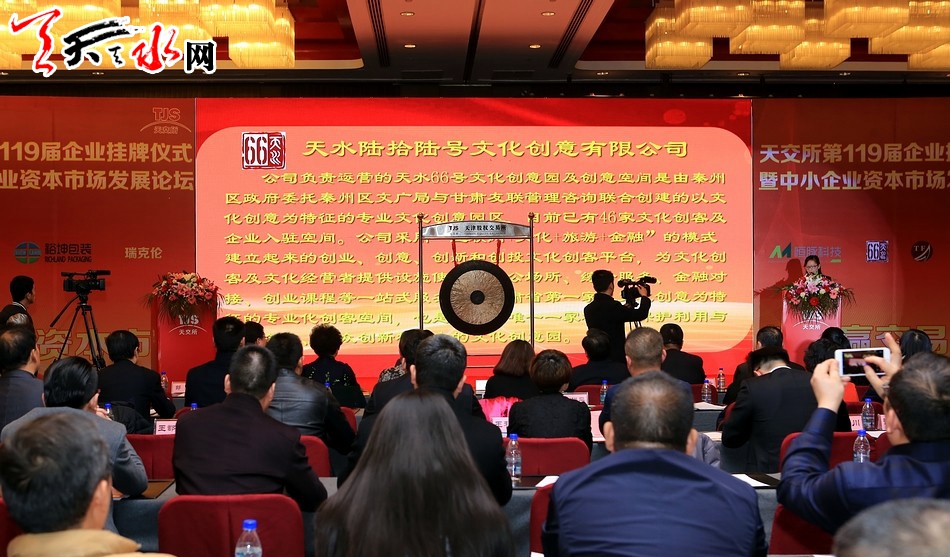 天天天水網(wǎng)天津電 11月28日,天水66號文化創(chuàng)意有限公司在天津股權(quán)交易所掛牌,成為全省進(jìn)入股權(quán)資本市場的第一家文化創(chuàng)意企業(yè),邁開了我省文化雙創(chuàng)企業(yè)進(jìn)入資本市場第一步。同日,天水市另一家企業(yè)——甘肅天峰資產(chǎn)管理有限公司也在天津股權(quán)交易所掛牌。