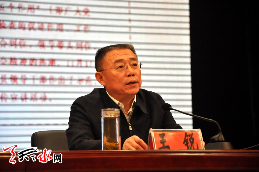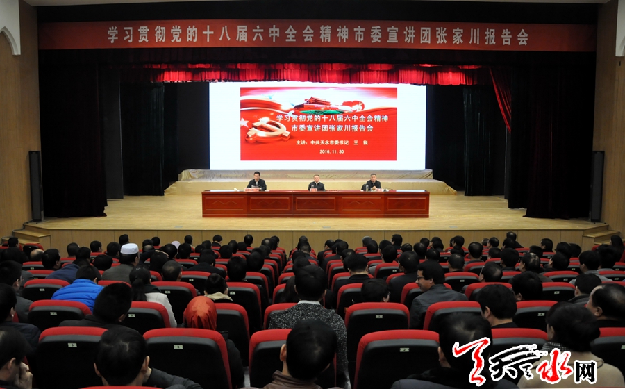 ????天天天水網(wǎng)訊【記者王曉馨】11月30日,市委書記王銳到張家川回族自治縣宣講黨的十八屆六中全會精神,圍繞學(xué)習(xí)貫徹全會精神和習(xí)近平總書記重要講話精神、深入推進(jìn)全面從嚴(yán)治黨作了專題輔導(dǎo)報(bào)告。他強(qiáng)調(diào),學(xué)習(xí)宣傳貫徹六中全會精神,是當(dāng)前和今后一個時期的首要政治任務(wù)。張家川縣各級黨組織要按照中央和省、市委部署,精心謀劃、精心組織、精心推進(jìn),教育引導(dǎo)廣大黨員和干部群眾以全會精神統(tǒng)一思想行動,進(jìn)一步增強(qiáng)“四個意識”特別是核心意識、看齊意識,堅(jiān)決維護(hù)以習(xí)近平同志為核心的黨中央權(quán)威,切實(shí)把全面從嚴(yán)治黨新要求落到實(shí)處,推動全縣經(jīng)濟(jì)社會發(fā)展再上新臺階。