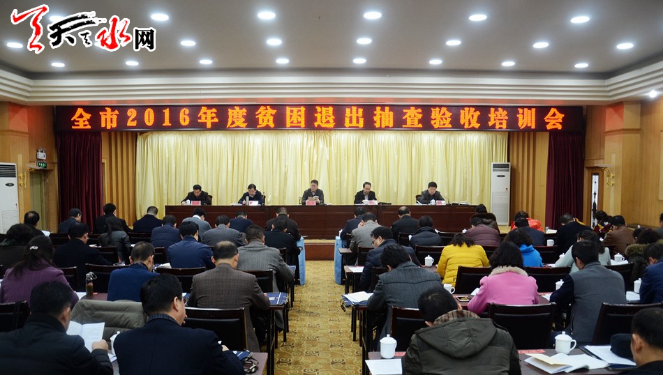天天天水網訊【記者趙蔓】11月30日,全市2016年度貧困退出驗收培訓會在天水迎賓館召開。天水市委副書記、市脫貧攻堅領導小組常務副組長王軍在會上強調,驗收組要從思想上高度重視,提高認識,自覺克服工作量大面寬、時間緊要求嚴的困難,明確任務,突出重點開展工作,不斷加強學習,積極掌握政策,抽查中注意方式方法,嚴肅組織紀律,確保抽查驗收客觀真實、扎實細致,確保高質量高標準完成年度貧困驗收工作。