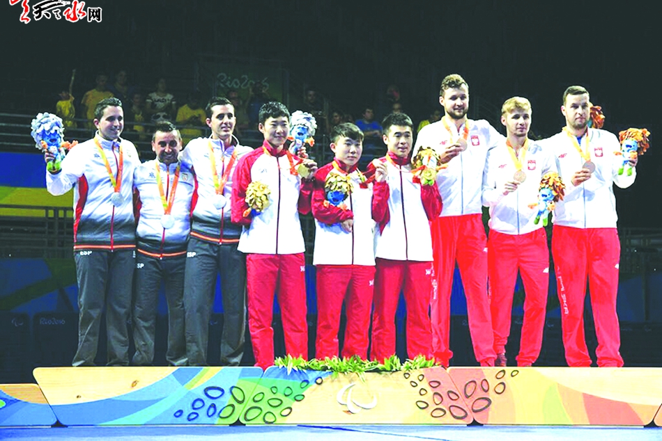 ▲連浩(左五)在里約殘奧會(huì)領(lǐng)獎(jiǎng)臺(tái)上