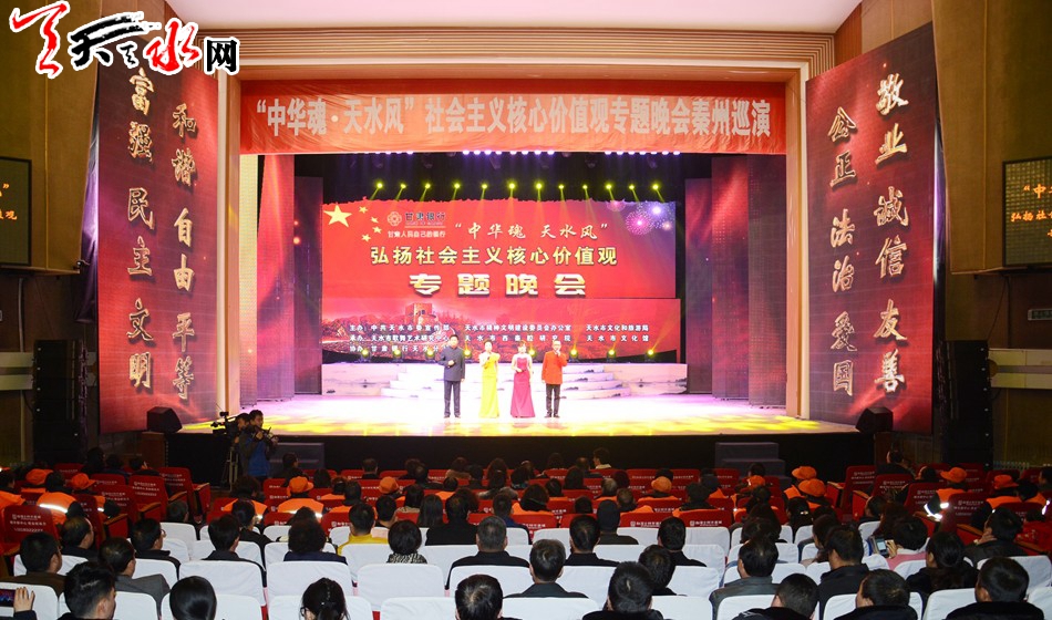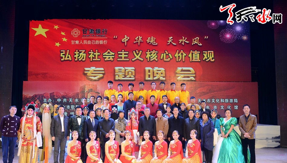 “中華魂·天水風(fēng)” —弘揚(yáng)社會(huì)主義核心價(jià)值觀專題晚會(huì)圍繞“弘揚(yáng)社會(huì)主義核心價(jià)值觀”這一主題,通過(guò)舞蹈、演唱、小品、相聲等豐富多彩的節(jié)目,用群眾喜聞樂(lè)見的形式弘揚(yáng)社會(huì)主義核心價(jià)值觀的內(nèi)涵,表達(dá)天水兒女踐行社會(huì)主義核心價(jià)值觀、全力建設(shè)“富裕、文明、美麗、和諧”新天水的信心和決心。晚會(huì)自2016年初演以來(lái)得到社會(huì)各界的一致好評(píng),在全市范圍內(nèi)營(yíng)造了良好的輿論氛圍。