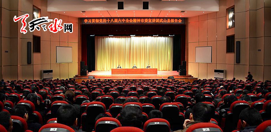 天天天水網(wǎng)訊 12月2日,天水市人大常委會主任王光慶到武山縣宣講黨的十八屆六中全會精神。他強調(diào),武山縣各級黨組織和廣大黨員干部要把學(xué)習(xí)貫徹六中全會精神作為當(dāng)前和今后一個時期的首要政治任務(wù)和戰(zhàn)略任務(wù)來抓,牢固樹立“四個意識”,堅決維護以習(xí)近平同志為核心的黨中央權(quán)威,按照中央和省、市委部署,深入推進全面從嚴治黨,營造良好政治生態(tài),加快全面建成小康社會進程。