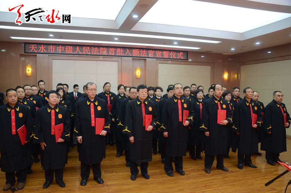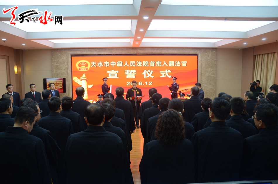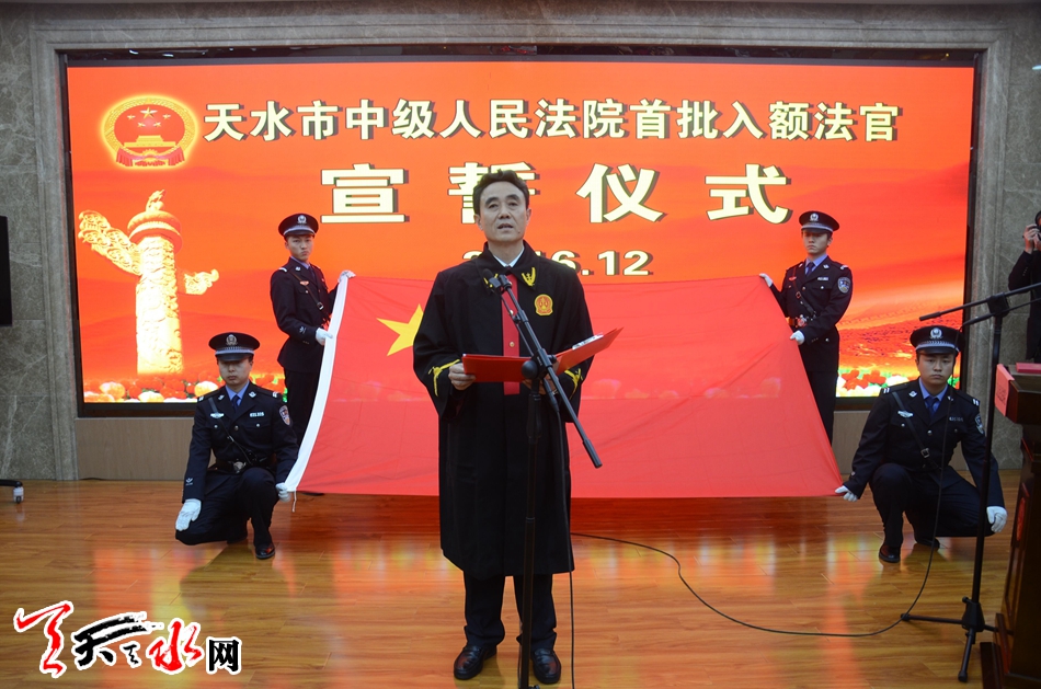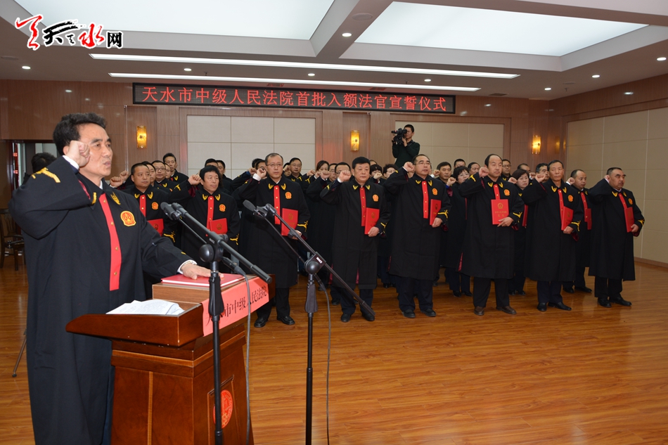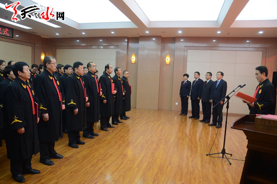 天水市人大常委會主任王光慶出席宣誓儀式并監(jiān)誓,市中級人民法院院長馬忠福主持宣誓儀式并領(lǐng)誓。