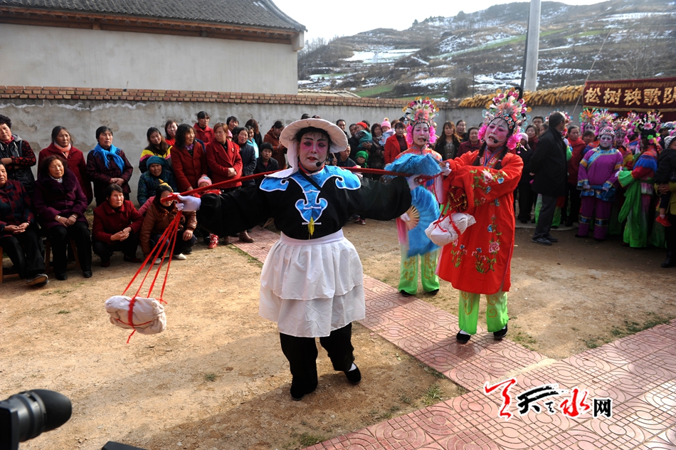 置身松李村設置于祥和農(nóng)家大院的社火場,聽著極富傳統(tǒng)韻味的、或抒發(fā)豐收喜悅、或祈愿外出務工家人安康、充滿思念之情歌唱;看著他們質(zhì)樸活潑的表演,秦州區(qū)文化館館長趙暉說,鄉(xiāng)村社火因其表演形式多樣、唱腔優(yōu)美且我市極富地域特色而一直深受廣大群眾喜愛。對此,秦州區(qū)文化館于近幾年來不斷加大保護力度,讓其進入非物質(zhì)文化遺產(chǎn)名錄,并多次組織優(yōu)秀民間表演團隊參加區(qū)、市、省級非遺展演和伏羲文化節(jié)民俗匯演。其演出足跡已由秦州區(qū)的鄉(xiāng)間院落延伸至東南沿海的劇院,每一次演出,都會受到如潮的好評。
