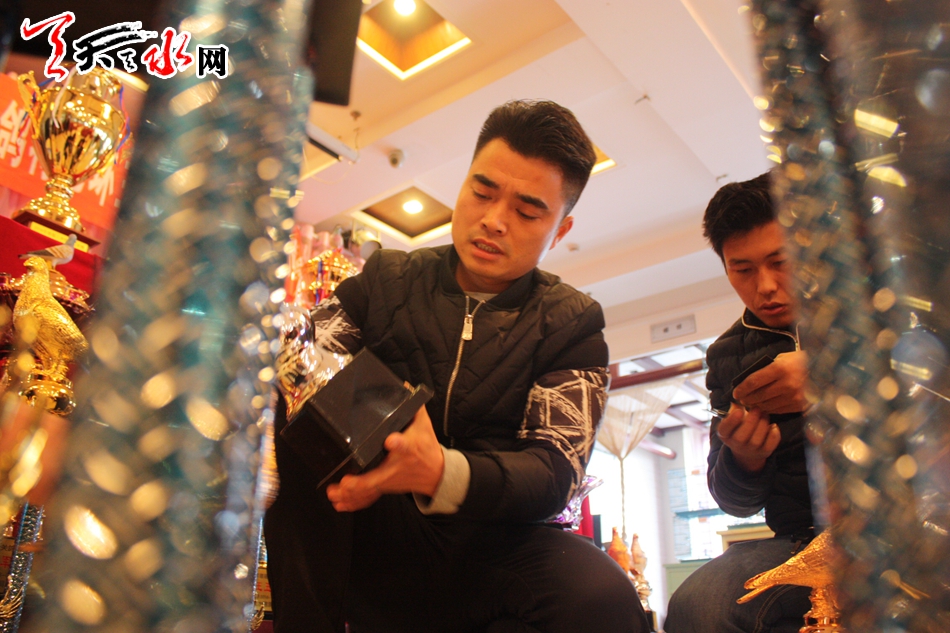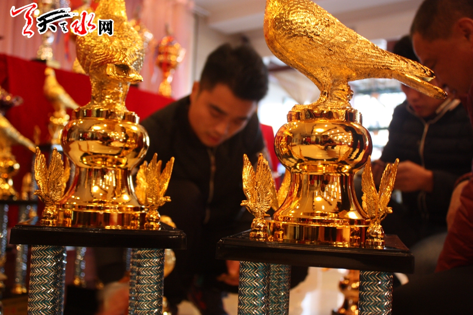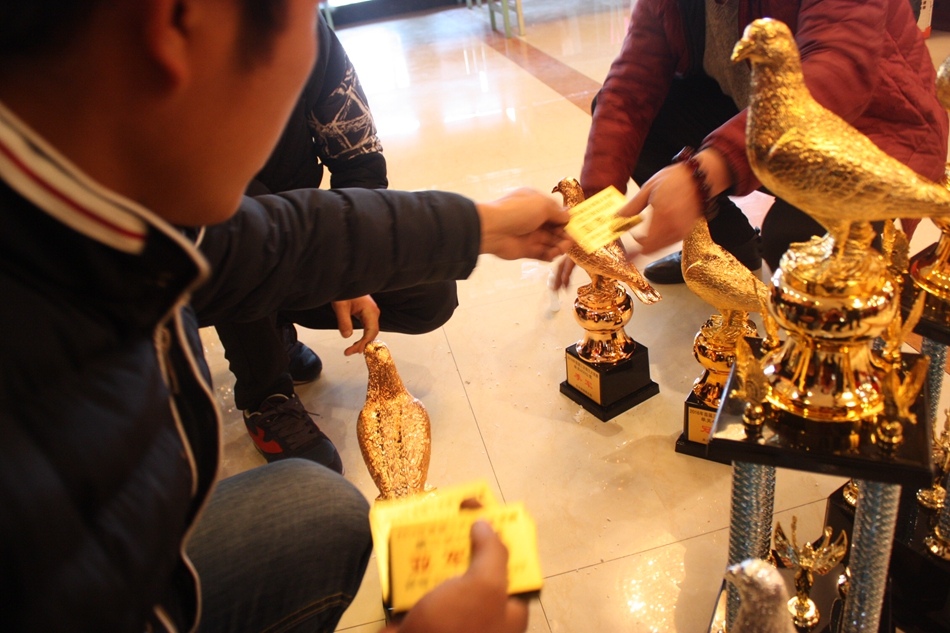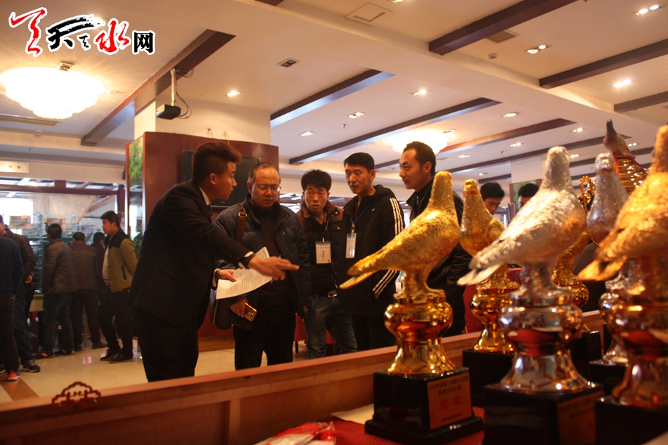 記者在現場看到拍賣會的主辦人——天水信鴿俱樂部的總經理方俊俊正忙著協(xié)調各方工作人員,并對獎杯進行著最后的檢查,確保不會出現紕漏。他對記者說:“天水的信鴿愛好者遍布兩區(qū)五縣,但因為缺少交流的平臺而無法引進良種以擴大自己養(yǎng)鴿的規(guī)模,所以我們舉辦了天水首屆由專業(yè)拍賣師主持的信鴿拍賣會,其目的就是讓天水的信鴿愛好者能齊聚一堂,公開、公正、公平地選到優(yōu)秀的鴿子,同時也希望愛好者之間的交流能讓天水信鴿的水平再上一個臺階?!?/p>