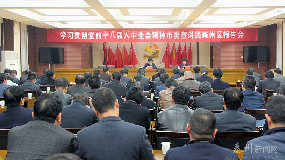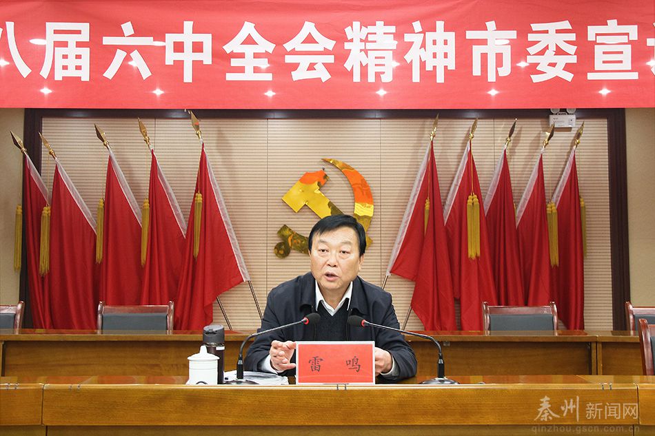 天天天水網(wǎng)訊【記者胡麗霞】12月6日,市委宣講團(tuán)成員、市委常委、秦州區(qū)委書記雷鳴為秦州區(qū)各部門各單位黨員干部宣講黨的十八屆六中全會(huì)精神。他強(qiáng)調(diào),全區(qū)各級黨組織和廣大黨員干部要把學(xué)習(xí)宣傳貫徹六中全會(huì)精神作為當(dāng)前首要政治任務(wù),不斷強(qiáng)化宗旨意識,認(rèn)真履行職責(zé),嚴(yán)明紀(jì)律規(guī)矩,以奮發(fā)有為的精神狀態(tài),把學(xué)習(xí)六中全會(huì)精神的成效轉(zhuǎn)化為決戰(zhàn)決勝全面小康的強(qiáng)大動(dòng)力。