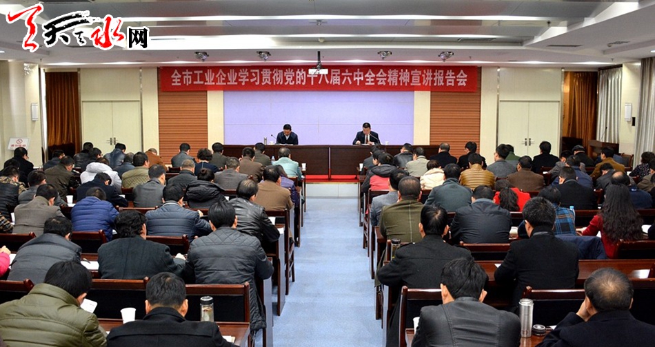 天天天水網(wǎng)訊【記者楊璟】12月9日上午,天水市委宣講團(tuán)成員、副市長郝文杰為全市工業(yè)系統(tǒng)干部職工宣講了黨的十八屆六中全會精神。