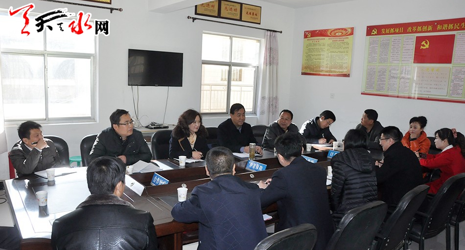 ▲在麥積區(qū)東岔鎮(zhèn)桃花坪村與鎮(zhèn)、村干部座談交流