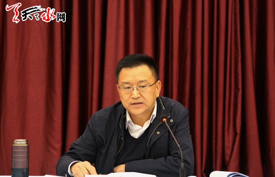 ▲天水市委常委、秘書長(zhǎng)、政法委書記蔣曉強(qiáng)匯報(bào)天水市2016年度政法綜治維穩(wěn)反邪教執(zhí)法督導(dǎo)依法治市工作