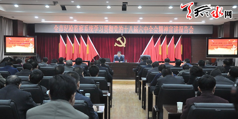 天天天水網(wǎng)訊【記者何郁】12月13日,天水市委宣講團(tuán)成員,市委常委、市紀(jì)委書記王國(guó)先為全市紀(jì)檢監(jiān)察系統(tǒng)學(xué)習(xí)宣傳貫徹黨的十八屆六中全會(huì)精神作宣講報(bào)告。