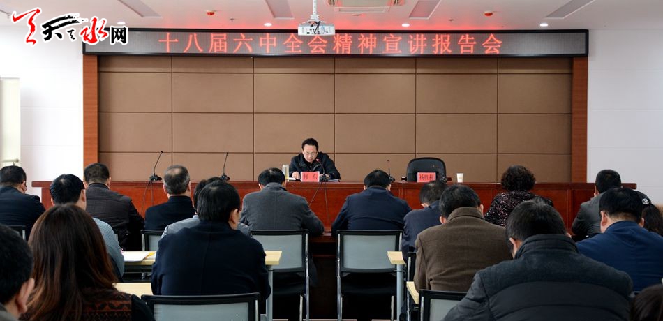 天天天水網(wǎng)訊【記者童強】12月16日,天水市副市長何東為全市建設(shè)、國土、規(guī)劃等部門廣大黨員干部宣講黨的十八屆六中全會精神。全市建設(shè)、國土、規(guī)劃、環(huán)保、民族宗教、地震等部門110余名黨員干部聆聽了宣講。