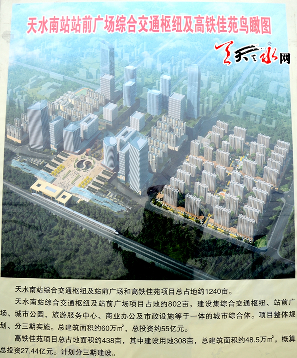 ▲天水高鐵南站站前廣場綜合交通樞紐及高鐵佳苑鳥瞰圖