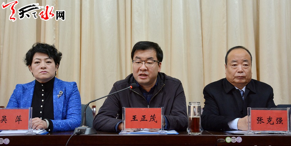 甘肅省委老干局副局長(zhǎng)、省關(guān)工委副主任吳萍,天水市委常委、組織部長(zhǎng)王正茂,天水市人大常委會(huì)副主任張克強(qiáng),天水市政協(xié)副主席王振宇,天水市關(guān)工委主任李世榮,天水市關(guān)工委副主任楊映芳、盧雙雙、李錄勤出席會(huì)議。天水市副市長(zhǎng)張建杰主持會(huì)議。